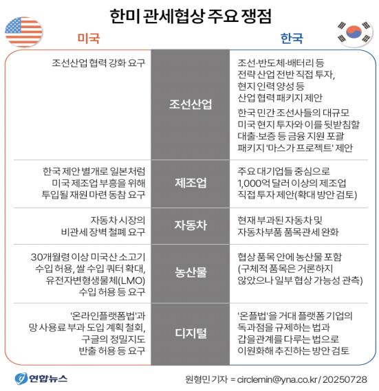 - 전일 삼성전자 이재용 회장과 한화 김동관 부회장에 이어, 오늘은 현대차그룹 정의선 의장이 미국으로 향하면서 미국과의 관세 협상에 합류. 미국의 투자 요구에 대해 재계 주요 인사들이 총출동 하여 지원사격에 나서는 것. 이러한 모습은 일본, EU 등 타 국가의 관세협상 사례에서는 찾아보기 어려웠던 것. 조선, 반도체, 자동차 등 주력 산업의 미국과의 협력이 한국만의 고유한 협상카드가 될 수 있을 것으로 기대. 기업들의 적극적인 협력 움직임은 국익에도 도움이 되지만, 정부 협조가 기업에도 이익이 될 것이라는 계산이 깔려있을 것으로 예상. 산업지원, 세제혜택, 규제완화 등의 인센티브가 사전에 소통이 되었을 수 있으며, 미국과의 협상 이후 지원 기업들의 장기적인 사업 개선 가능성 또한 염두할 수 있을 것