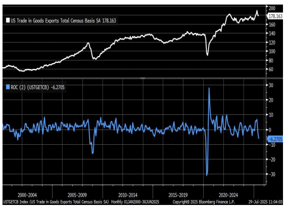 # 최근 2 개월 간 미국 상품 수출은 6.2% 하락. 이는 2020 년 5 월 이후 최저치