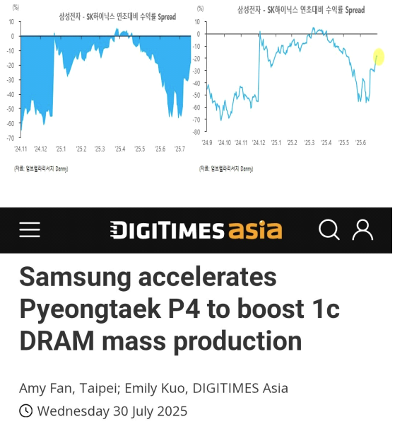 # 삼성전자가 평택 P4 공장의 1c DRAM 양산을 가속화. 지난해 공사가 중단되었던 PH4 공사 재개를 서두르고 있는 것으로 전해짐. 10nm 급 공정을 양산해야하는 필요성에 의해 비롯된 것으로 알려짐