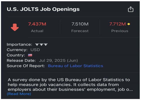 # 6 월 JOLTs 구인건수 예상치 하회. 5 월 구인건수도 하향조정