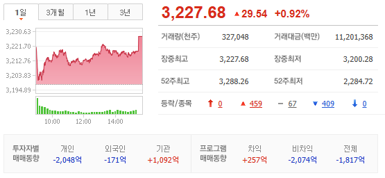 :업종별로 반도체, 조선, 엔터, 인터넷, 화장품 상승. 헬스케어, 금융지주 철강, 통신, 음식료 업종 하락