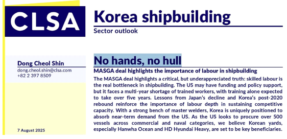# (by 서화백의 그림놀이) No hands, no hull – Korea shipbuilding 작성자: Dong Cheol Shin (CLSA)