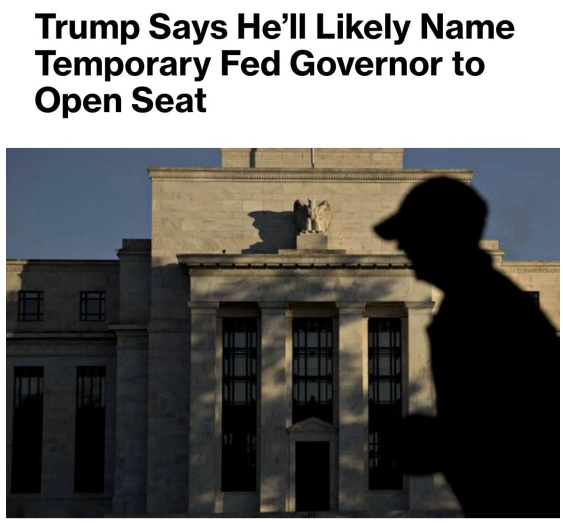 # 8/8 쿠글러 이사 사임 후 공석은 파월 의장 후임보다는 4 개월 임시직을 지명할 가능성이 높아졌음. 트럼프는 3 명의 후보를 고려 중이며 임시직은 월가 출신일수도 있다고 언급