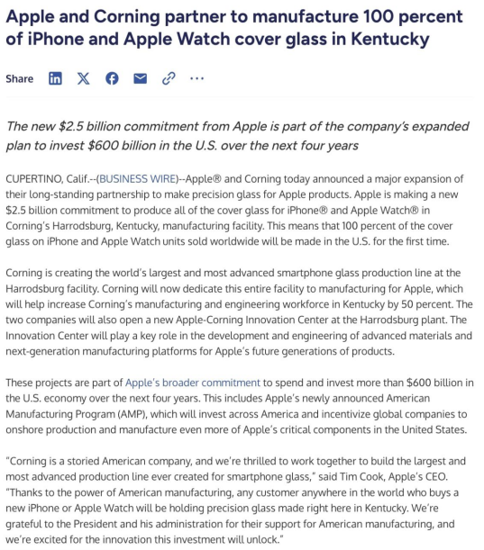 # 애플, 아이폰과 애플워치의 모든 디스플레이를 미국 켄터키에서 생산하겠다고 공식 발표