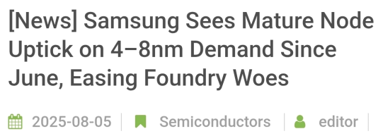 # (by 트랜드포스) Samsung Sees Mature Node Uptick on 4–8nm Demand Since June, Easing Foundry Woes