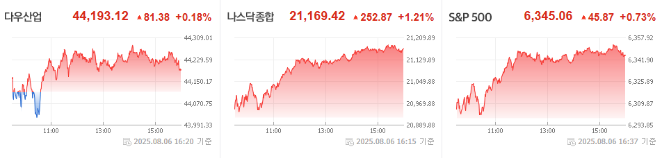 2025년 8월 6일 미국 증시는 하락 이었습니다.