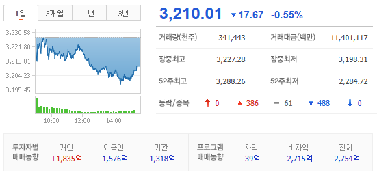 :외국인, 기관 KOSPI 현물 동반 순매도하는 가운데, 개인 단독 오전 2,000 억원 이상 순매수