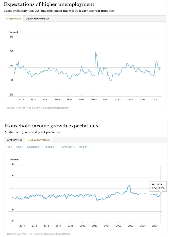 # 뉴욕 연은에서는 향후 1 년 실업률 상승 확률과 가계소득 증가율 전망치도 함께 발표