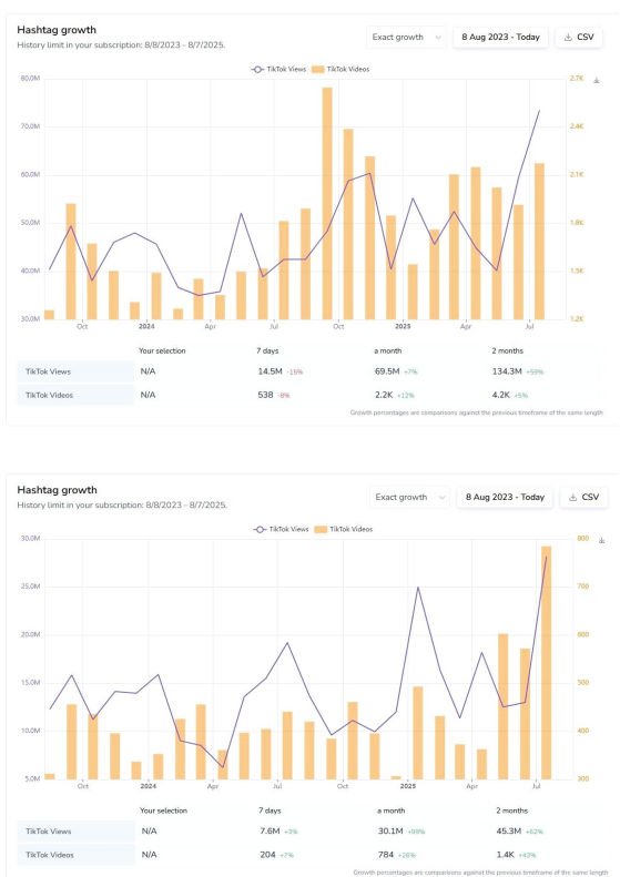 # (by CTT 리서치) TikTok Veiws : "김밥, Kimbap(위), Gimbap(아래)"