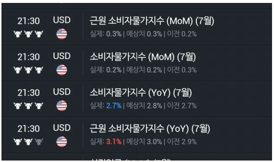 :미국 7 월 소비자물가 YoY 2.7% 상승. 핵심 소비자물가 YoY 3.1% 올라 헤드라인 컨센서스 부합
