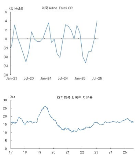 - 해외 투자자들이 다시 항공업종에 대해 관심갖기 시작하면, 아시아 시장에서는 대한항공을 꼭 챙겨보게 될 것입니다. 최근 항공우주 사업이 거론되는 것도 K 방산에 대한 해외 쪽 관심이 커보입니다. 참고로, 델타항공의 2025F EV/EBITDA 가 6 배인데, 실적이 더 좋은 대한항공은 4 배에 불과합니다. 국내 수급만 보면 많이 차 있다는 느낌이지만, 외국인 지분율은 올라갈 여지가 많습니다.