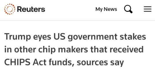 - 미국 내 반도체 공장 건설에서 칩스법 자금을 지원받는 기업들에 대해 정부가 일정 지분을 확보하는 방안 검토 중