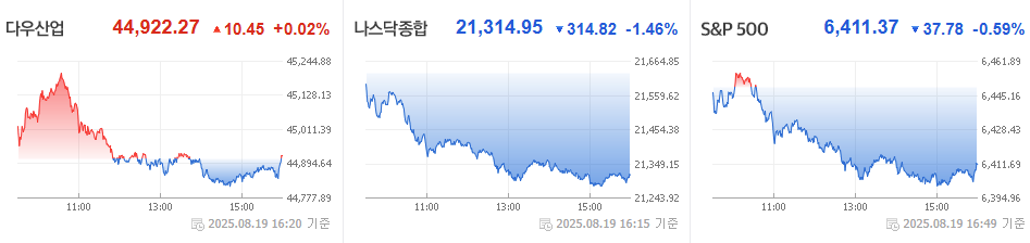 2025년 8월 19일 미국 증시는 혼조 이었습니다.