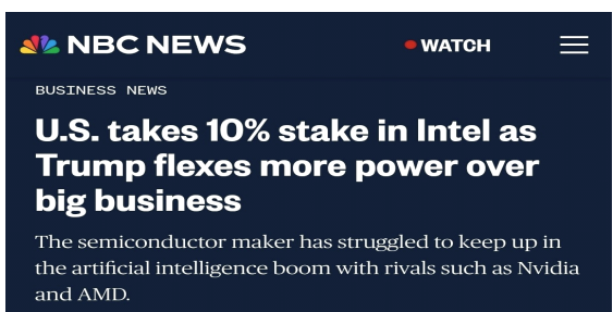 # 트럼프 행정부, 대기업에 대한 권력 강화에 인텔 지분 10% 인수...삼성전자 불편
