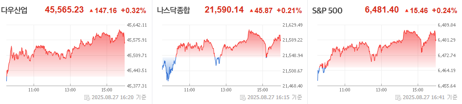 2025년 8월 27일 미국 증시는 상승 이었습니다.