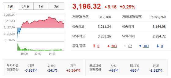 - KOSPI 보합 출발했으나, 금융 중심 반등에 상승, 외국인은 현선물 양매수로 지수 상승 전환 견인