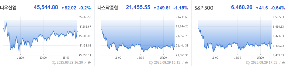 2025년 8월 29일 미국 증시는 하락 이었습니다.