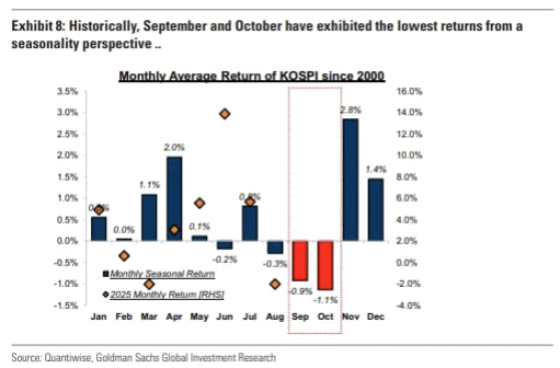 - 턴퀴스트 분석가는 "9 월은 격동의 시기라는 평판에 걸맞은 한 달이 될 수 있다. 그러나, 역사적으로 볼 때, 시장이 상승세를 보일 때에는 계절적 약세가 반드시 영향을 미치는 것은 아니다. 더욱이, 시장이 내림세를 겪더라도, 계절적 역풍은 10 월에 다시 순풍으로 전환된다. 또한, 계절성은 시장 성과에 영향을 미치는 부수적 요인이며, 전반적인 경제 펀더멘털과 기업 실적이 궁극적으로 주식 성과를 좌우한다"라고 언급