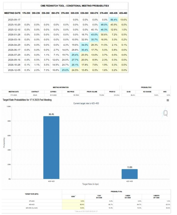 # 금주 GDP, PCE 등 주요 월말 지표 발표 이후에도 9 월 기준금리 인하 확률은 86%대를 유지