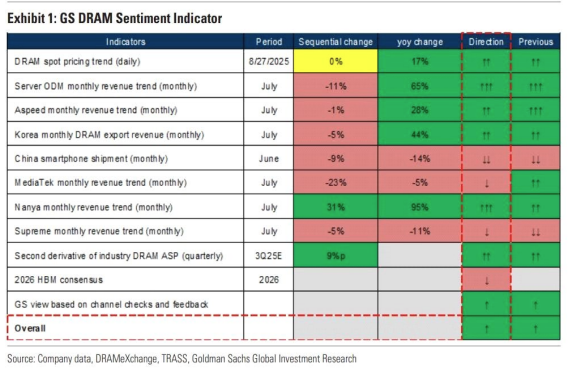 # (by 골드만삭스) South Korea Technology: August 2025 GS DRAM sentiment indicator: HBM pricing expectation coming down but still more positive than GSe - Goldman Sachs