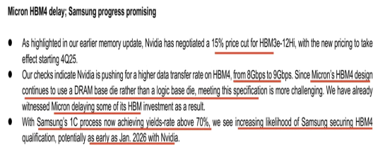 # (by 루팡) GF Securities - Micron HBM4 지연; 삼성의 진척 상황은 긍정적