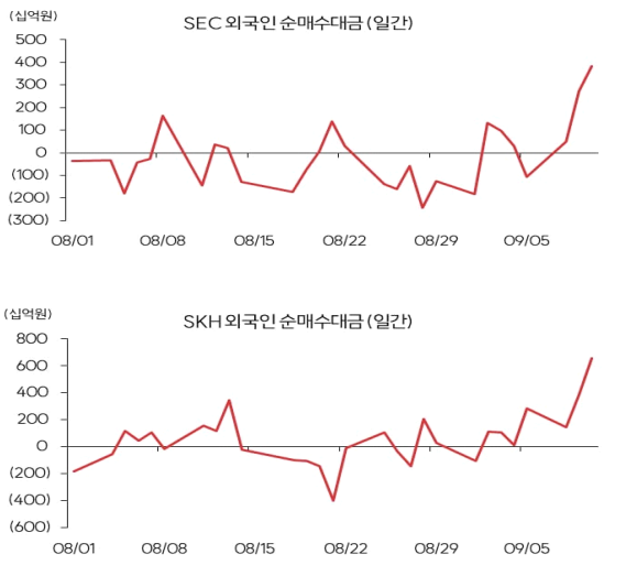 # (by SK 증권) 삼성전자, SK 하이닉스 외국인 순매수대금 추이