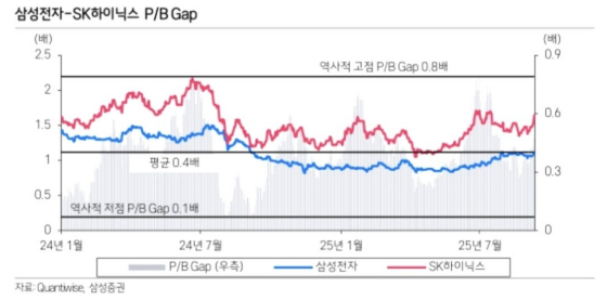 • 삼성전자: NAND 최대 사업자(25 년 2Q 매출점유율 33%), 규모의 경제로 역사적 OPM 상회 사례 다수. HBM/서버 DRAM 회복 + GDDR7·SOCAMM 기회 + NAND 스케일로 리레이팅 여지. P/B 1.2x 는 과거 피크 1.6x 대비 매력. Top Pick 유지.