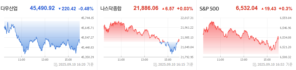 2025년 9월 10일 미국 증시는 상승 이었습니다.