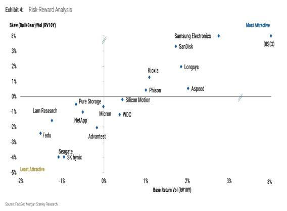 • 테크 옵션: QLC/NL SSD/HBF 체인 노출(Advantest, DISCO, SIMO, Longsys, Phison)로 중기 알파 추구.