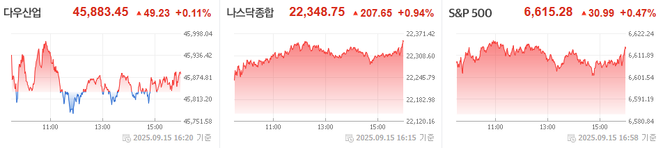 2025년 9월 15일 미국 증시는 상승 이었습니다.