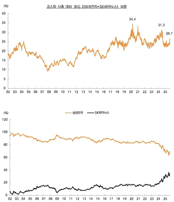 (그림 1) 코스피 지수 내 Big2(삼성+SK) 시총 비중