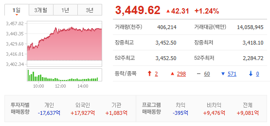 :KOSPI 시총 1,2 위 신고가 경신에 지수는 신고가 또다시 경신