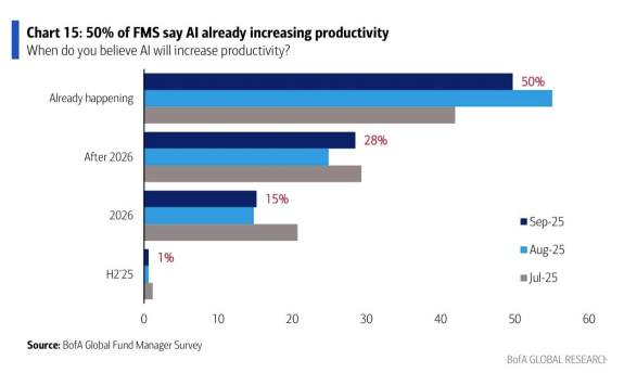 9) AI 를 통한 생산성 이미 증가 50% 응답