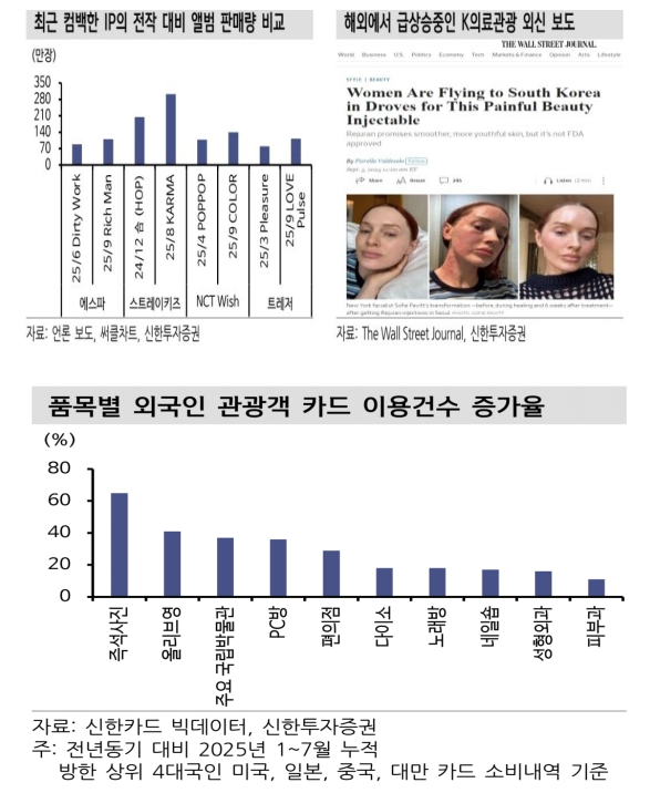 - 한편, 신한투자증권은 보고서를 통해 BTS 와 블랙핑크(음악), 오징어 게임(드라마), 기생충(영화), 흑백 요리사(예능) 등 각 장르에서 메가 히트작이 연달아 탄생하고 있는 지금, 케데헌은 ‘K-something’을 남녀노소 모두가 좋아하는 ‘대중적’ 반열에 안착시켰다고 밝힘. 이어, 전세계 흥미와 관심을 유발하고 있는 K-컬쳐, 케데헌의 진짜 효과는 지금부터라며, 본격적으로 케데헌이 전방위적인 섹터(콘텐츠 전체 카테고리/푸드/뷰티 등)에 걸쳐 큰 변화와 사업적 기회를 주리라 기대한다고 밝힘