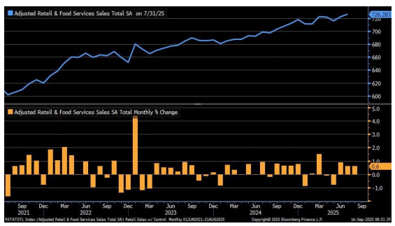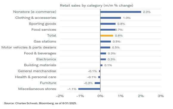 » 8 월 미국 소매판매는 전월 대비 +0.6% 증가하며 시장 예상치(+0.2%)를 크게 상회. 전월치도 +0.6%로 상향 수정