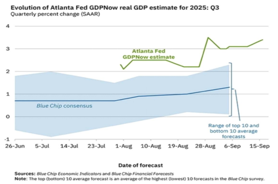 - Atlanta GDP now 의 3Q GDP 는 전기대비 연율 +3.4%로 이전 추정치 대비 +0.3%p 상향 조정