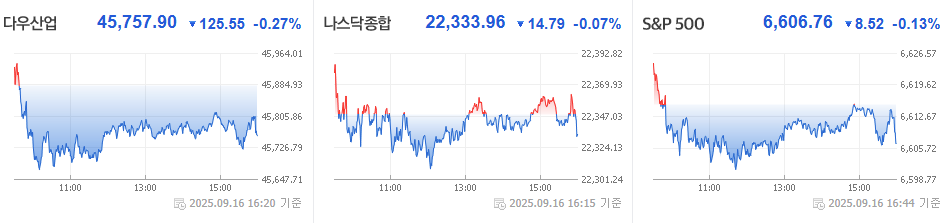 2025년 9월 16일 미국 증시는 하락 이었습니다.