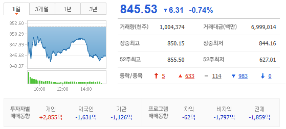 - KOSDAQ 은 시총 상위 바이오텍 중심 대형주 하락. 외국인 3 일 연속 매도세. 최근 상승폭 컸던 반도체 소부장 등 차익실현 매물 출회. 한중 관계 개선 기대에 관련주 약진
