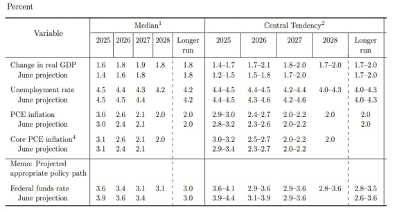 : 2026 년은 6 월과 같이 1 회 인하 유지. 단, 2025 년이 3.625%로 25bp 하향조정되면서 2026 년 중간값도 3.375%로 하향조정