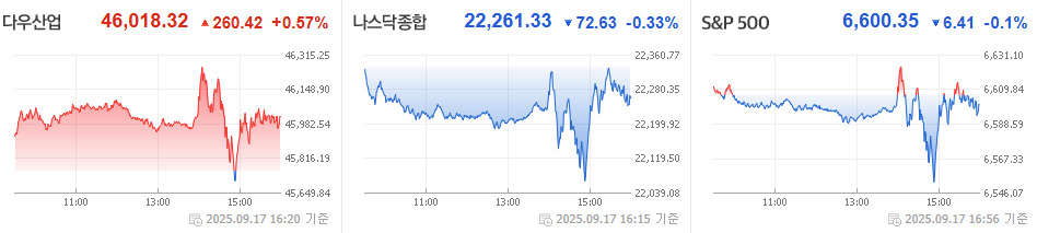 2025년 9월 17일 미국 증시는 상승 이었습니다.