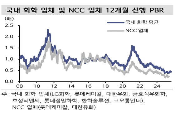 - 이어, EIA 에 따르면, 26 년 국제유가(WTI)는 OPEC+ 감산 완화에 따른 공급 증가로 배럴당 48 달러가 예상되는 반면, 美 천연가스 가격은 LNG 수출 확대 등으로 4.3 달러/MMBtu(vs. 25 년 3.5 달러)가 전망된다며, 유가 하락 및 천연가스 강세로 국내 업체(NCC)의 ECC 대비 원가 경쟁력은 회복되겠다고 밝힘. 9 월 납사/에탄 배수는 저유가로 호황기(15~17 년)였던 시기와 유사한 6 배 수준이라며, 저유가 기조로 원가 경쟁력이 중요한 범용 화학 산업에서 NCC 경쟁 열위는 해소되겠다고 언급