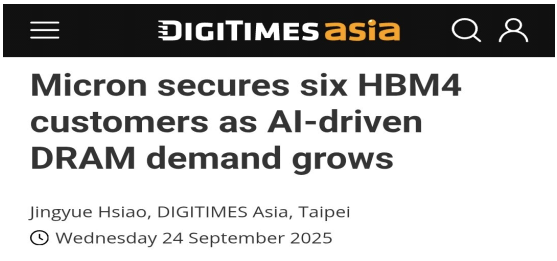 # Micron 이 AI 기반 DRAM 수요 증가에 따라 HBM4 고객 6 곳을 확보했다고 밝힘