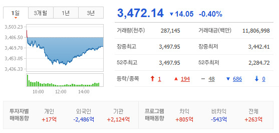 - KOSPI 는 신고가 랠리 주도한 반도체 차익실현, 외국인 현선물 동반 순매도에 과열 식혀가는 흐름