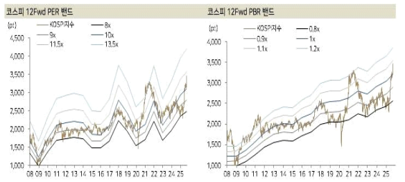 # (by 다올투자증권) 코스피 12Fwd PER, PBR 밴드 공유