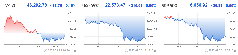 2025년 9월 23일 미국 증시는 하락 이었습니다.