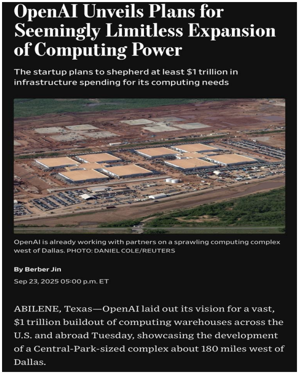 - DA 데이비슨의 길 루리아: 시장은 오픈 AI 가 필요 자본을 엔비디아를 통해서만 조달할 수 있다는 점을 깨달음.