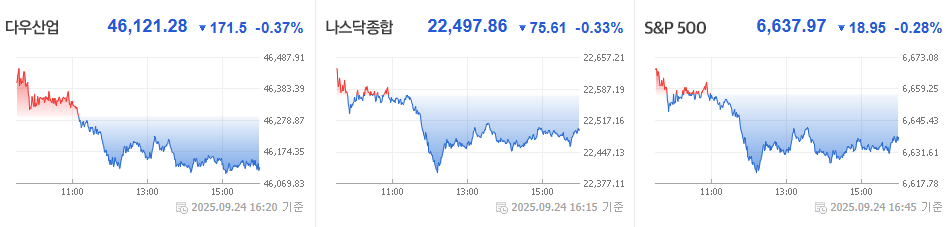 2025년 9월 24일 미국 증시는 하락 이었습니다.