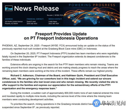 - 이와 관련, 투자은행 제프리스는 그라스버그를 세계 최대·최저비용 수준의 광산중 하나로 꼽으며 이번 사고로 글로벌 구리 공급 차질이 불가피하다고 분석했으며, 구리 가격이 강세를 이어갈 가능성이 크다고 전망했음