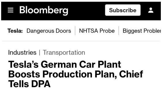 # 블룸버그) 테슬라 독일 공장, 생산 계획 상향 조정 — DPA 보도