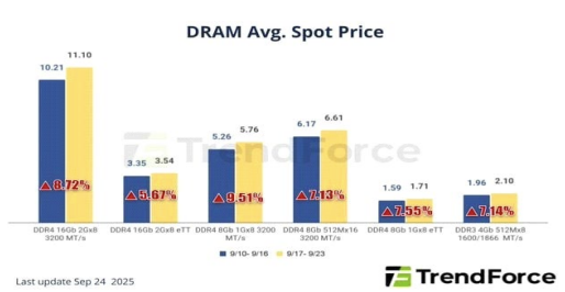 【DDR4, D 램 가격 랠리 주도…메인스트림 칩 이번 주 6.88% 급등】